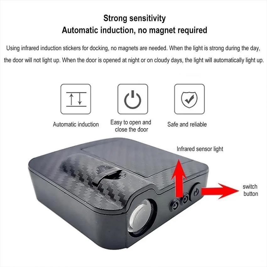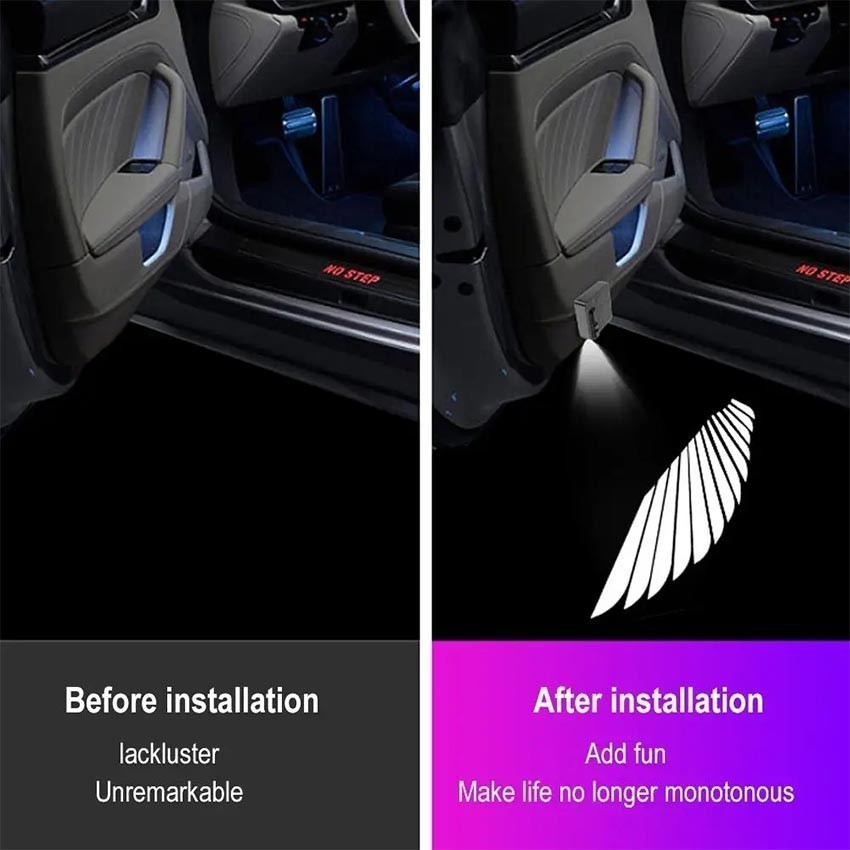 Lampu Led Pintu Mobil Wireless Logo Merk Mobil Lampu Proyektor Pintu Mobil Car Door Portable Battery Welcome Shadow Light Angel Wings