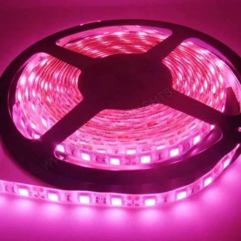 Lampu Led Strip Roll 5 meter 24 volt Led 3528 Nyala Pink