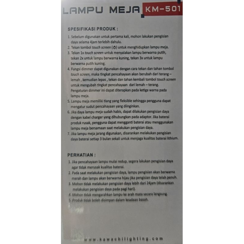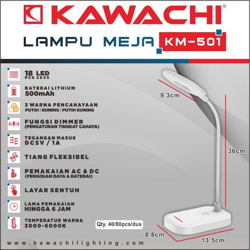 Lampu Meja Belajar Portable Kawachi KM-501 / Lampu Portable Cas Bisa Jadi Lampu Konten Nyala Putih, Warmwhite, Putih Warmwhite / Lampu Ring Meja