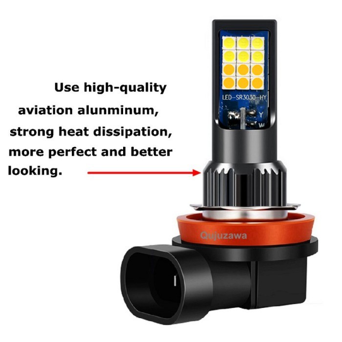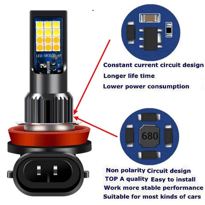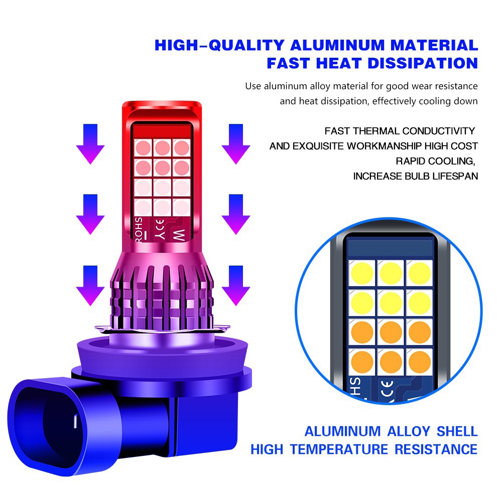 Lampu Mobil LED 24smd H11/H8 Dual Color Putih Kuning 6K 3K Headlight Fog Lamp 2 PCS