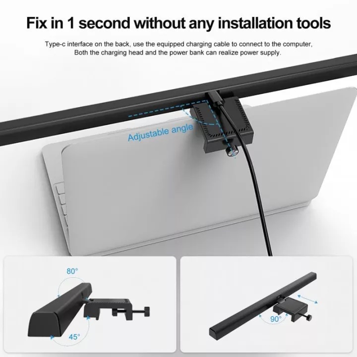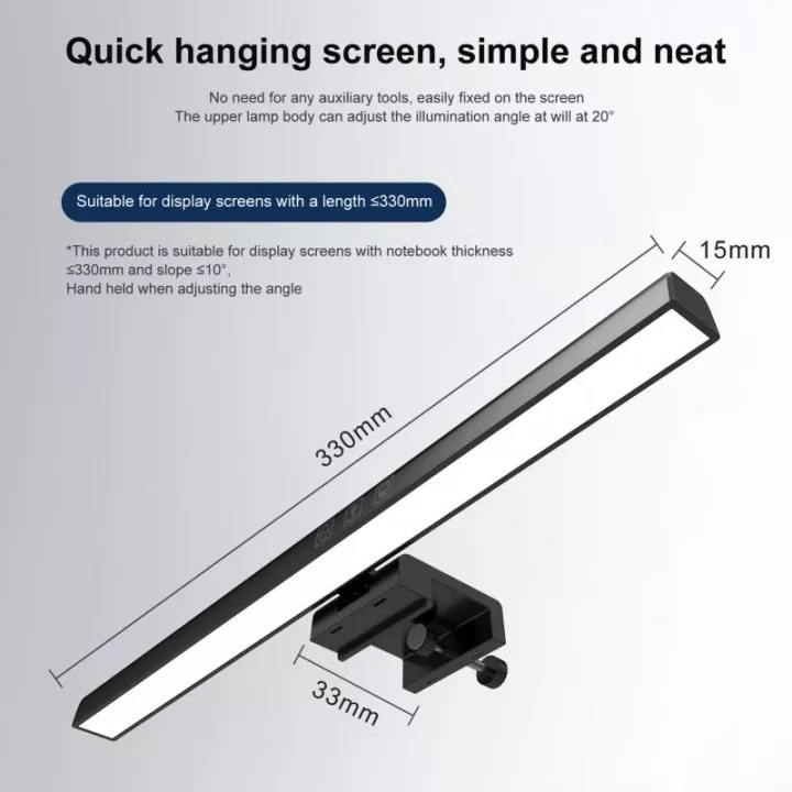 Lampu Monitor Laptop Led Bar Jepit Clamp Baca Tulis Light USB Lighting Portable Meja PC Komputer Warm White Desk Screen Clip Touch Switch Dimmable Dimmer Type C Adjustable Gaming Office Reading Watching Screenbar Setup Table Computer Layar Rumah Kamar