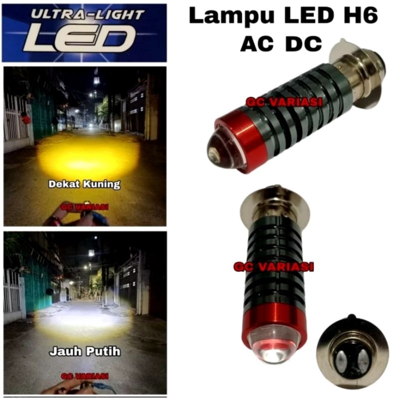 Lampu Motor Bebek Matic Led H6 Laser AC DC Cahaya 2Warna Dekat Putih Jauh Kuning/Lampu Utama Depan Motor Bebek Matic H6 Laser D2 Cahaya Kuning Putih AC DC