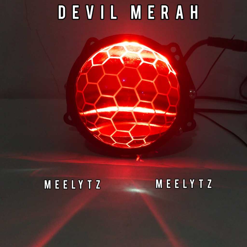Lampu Motor Mobil Projector Biled CR7 3INC Flat Cut Biled Jaring Blue Lens plus devil eye - C 994