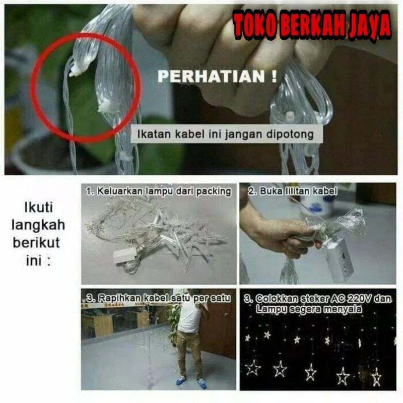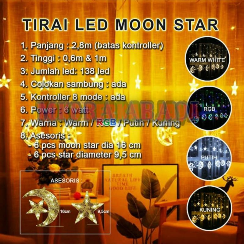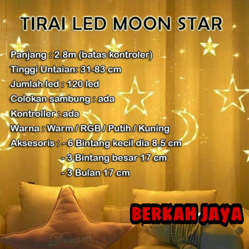 Lampu Natal/Lampu Hias Tirai LED Bulan Bintang 138 LED 3 Meter