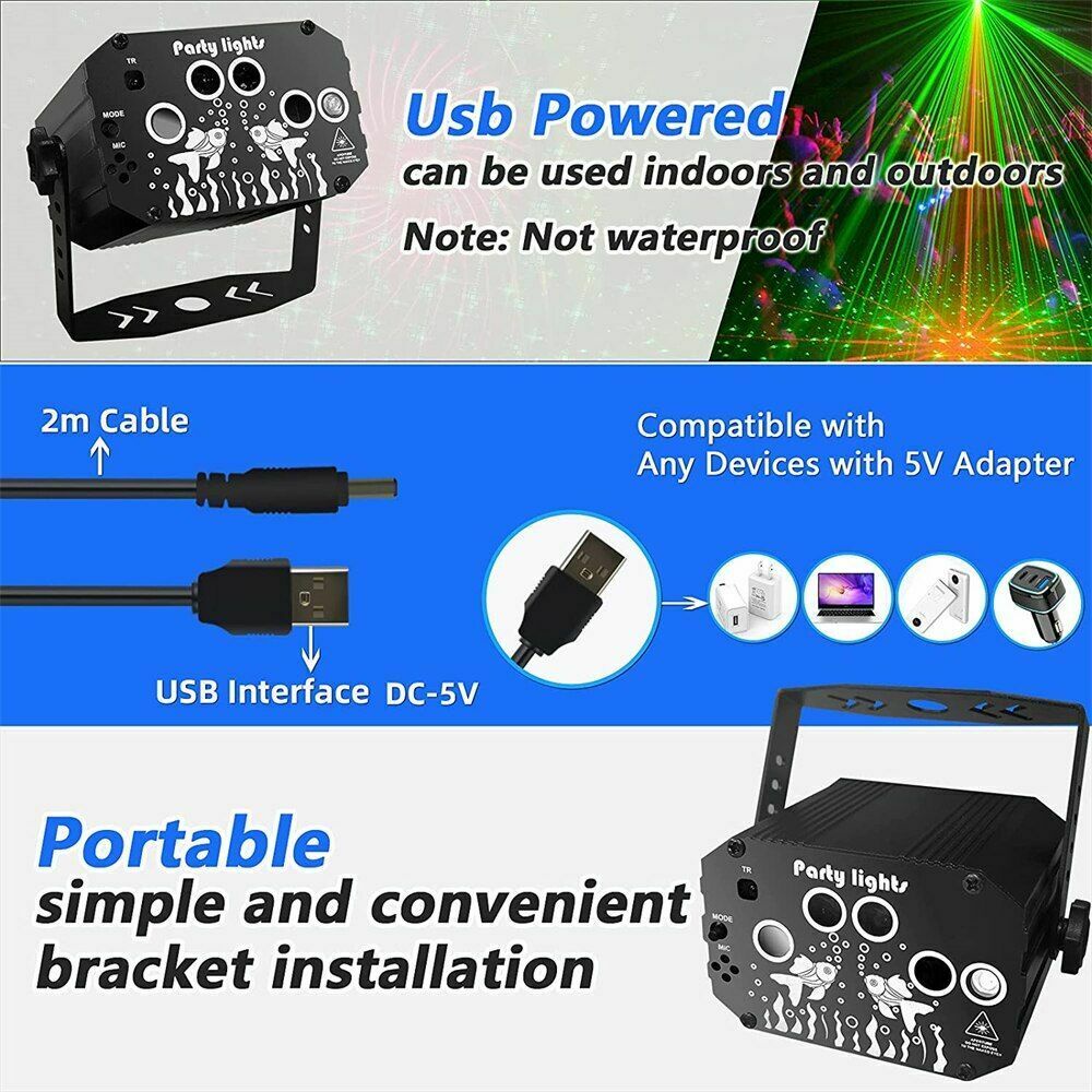 Lampu Panggung Laser Projector USB LED Lampu Sorot Panggung RGB Laser Proyektor Disco Party Lighting