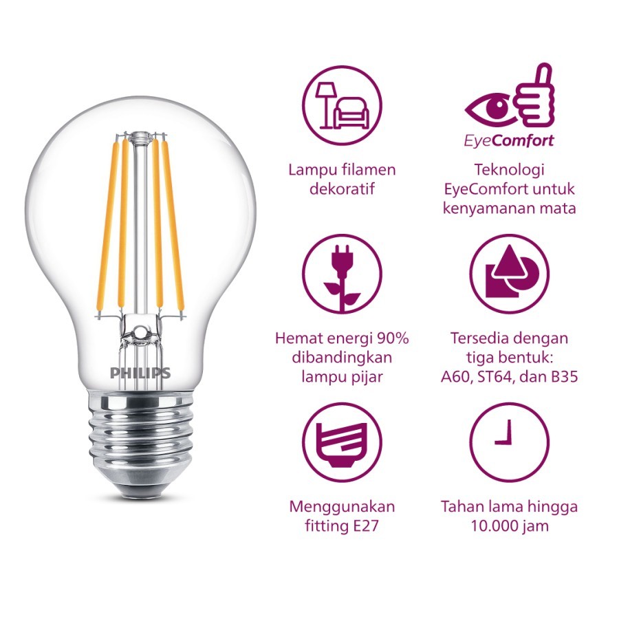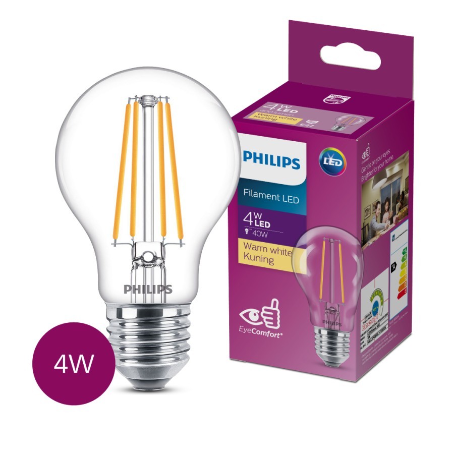Lampu Philips Filament Bohlam LED 4W A60 E27 Kuning