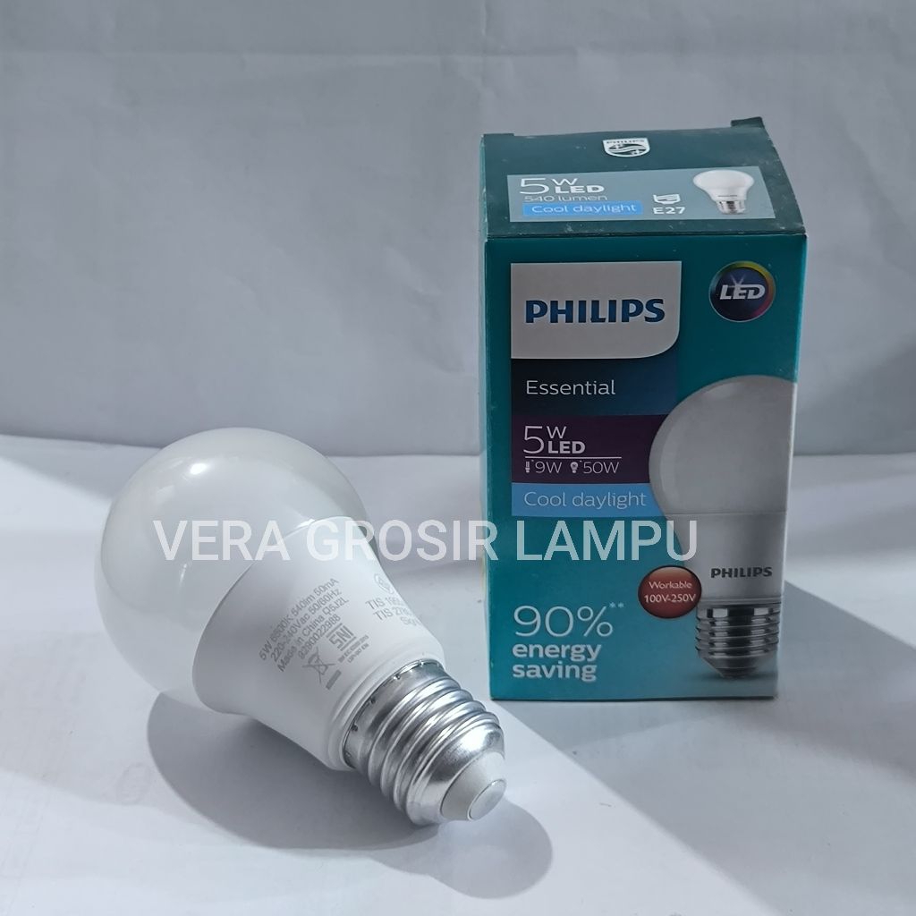 Lampu Philips led bulb Essential 5w cahaya putih / Lampu led Philips Essential bulb 5w cahaya putih 6500K E27