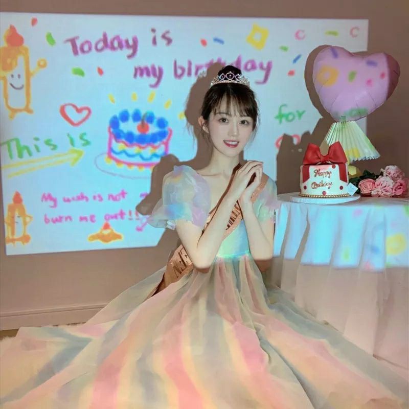 Lampu Proyektor Foto Mini / Projector Backdrop Happy Birthday Ulang Tahun Unik Gaya Korea