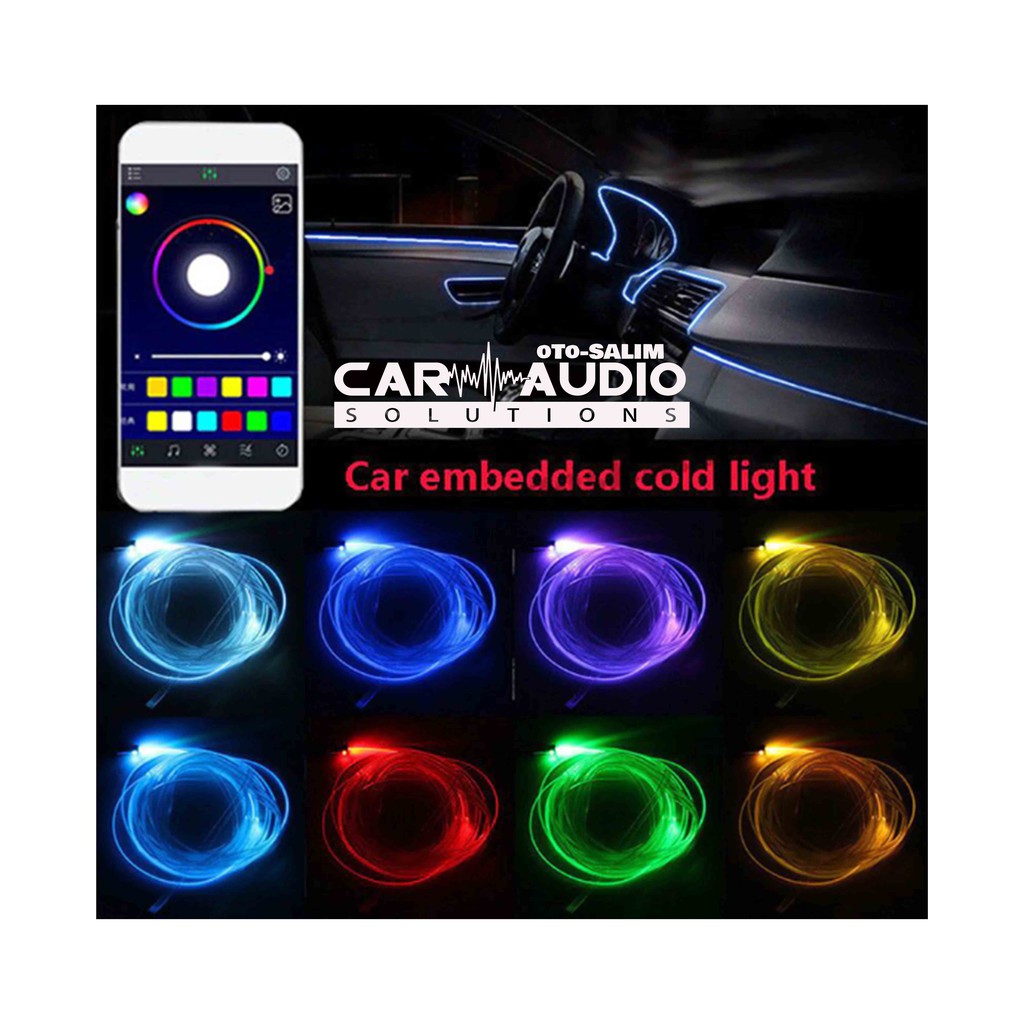 Lampu RGB LED Mobil Fiber Optik Ambient Atmosphere Smartphone Control