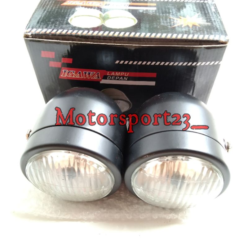 Lampu Reflektor Bulat double Classic Headlamp Twin Reflektor Cafe Racer Scorpio Harley Twin Vixion Tiger