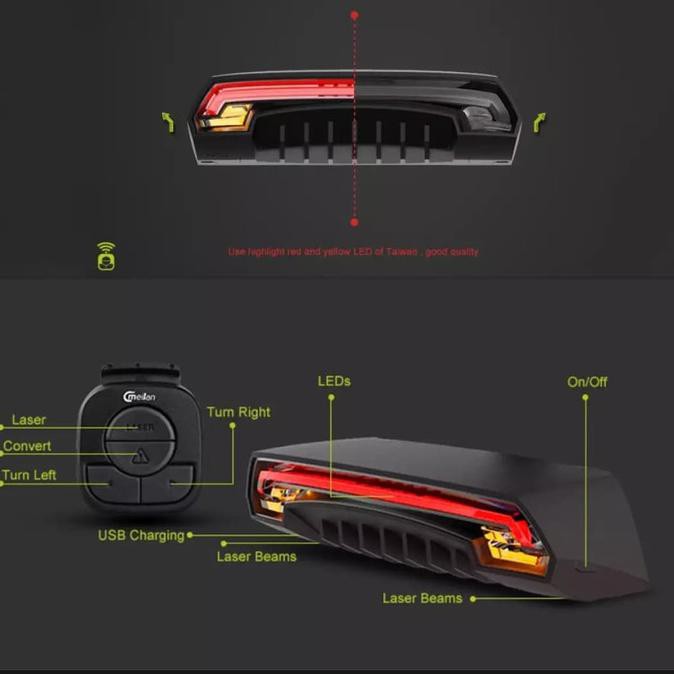 Lampu Sein Sepeda X5 Meilan Original Non Rockbros Led Laser Usb Chrger Perdanastoreid