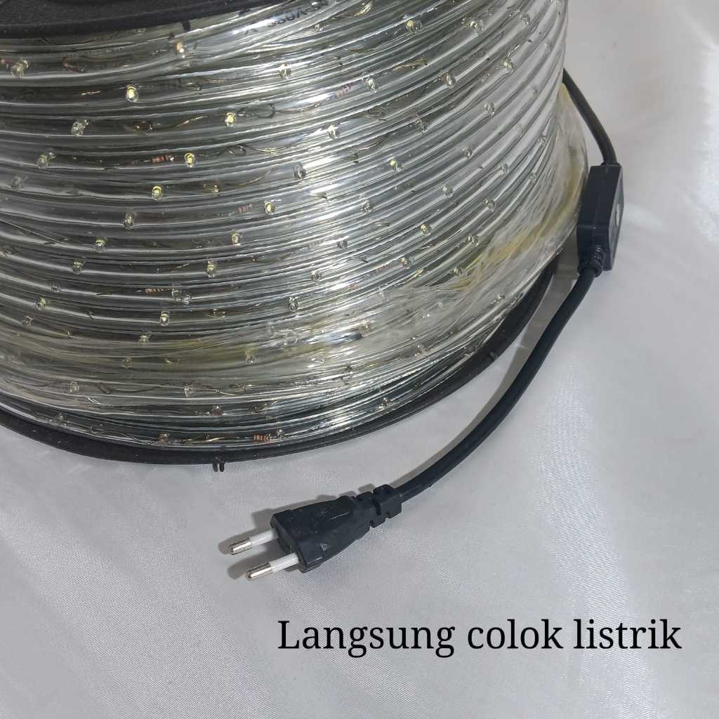 Lampu Selang LED Bulat 2 Jalur 100 Meter/Selang Led Rope Light 100 Meter Cahaya Putih Waterproof
