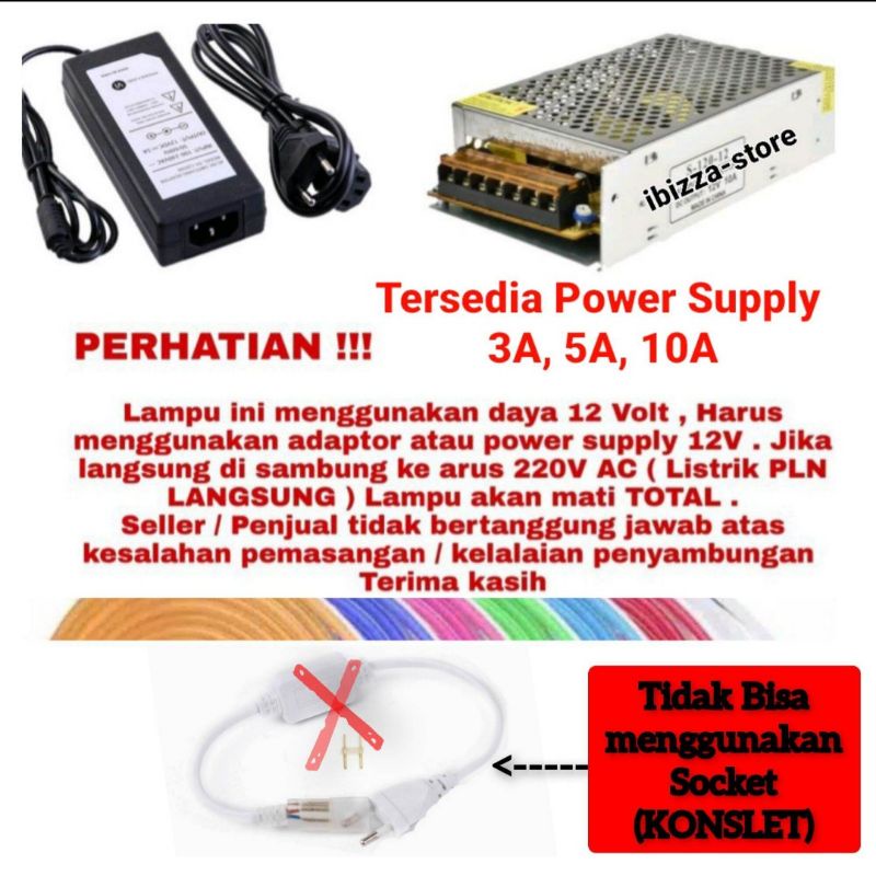 Lampu Selang NEON FLEX Led DC 12V Volt 5M meter Strip Flexibel neon text 5m Garansi- wajib adaptor /power supply /aki 12v