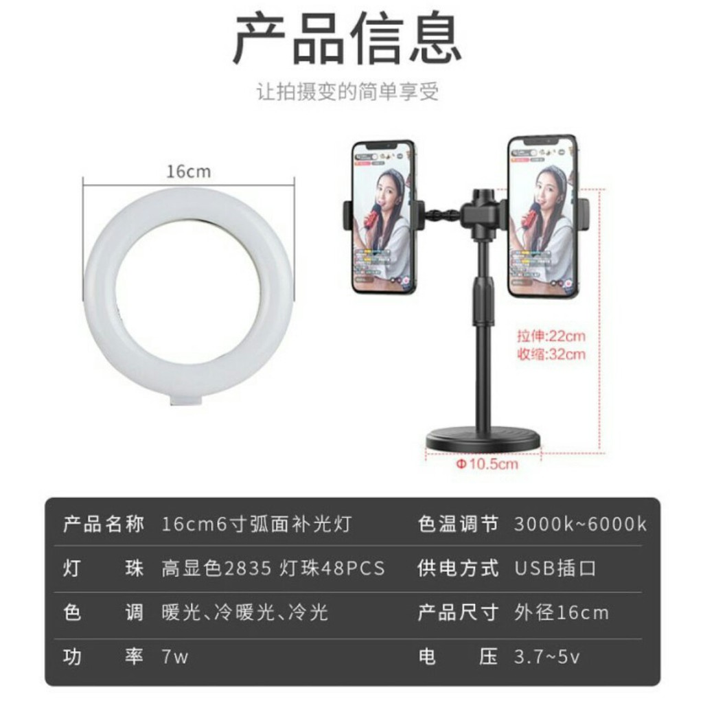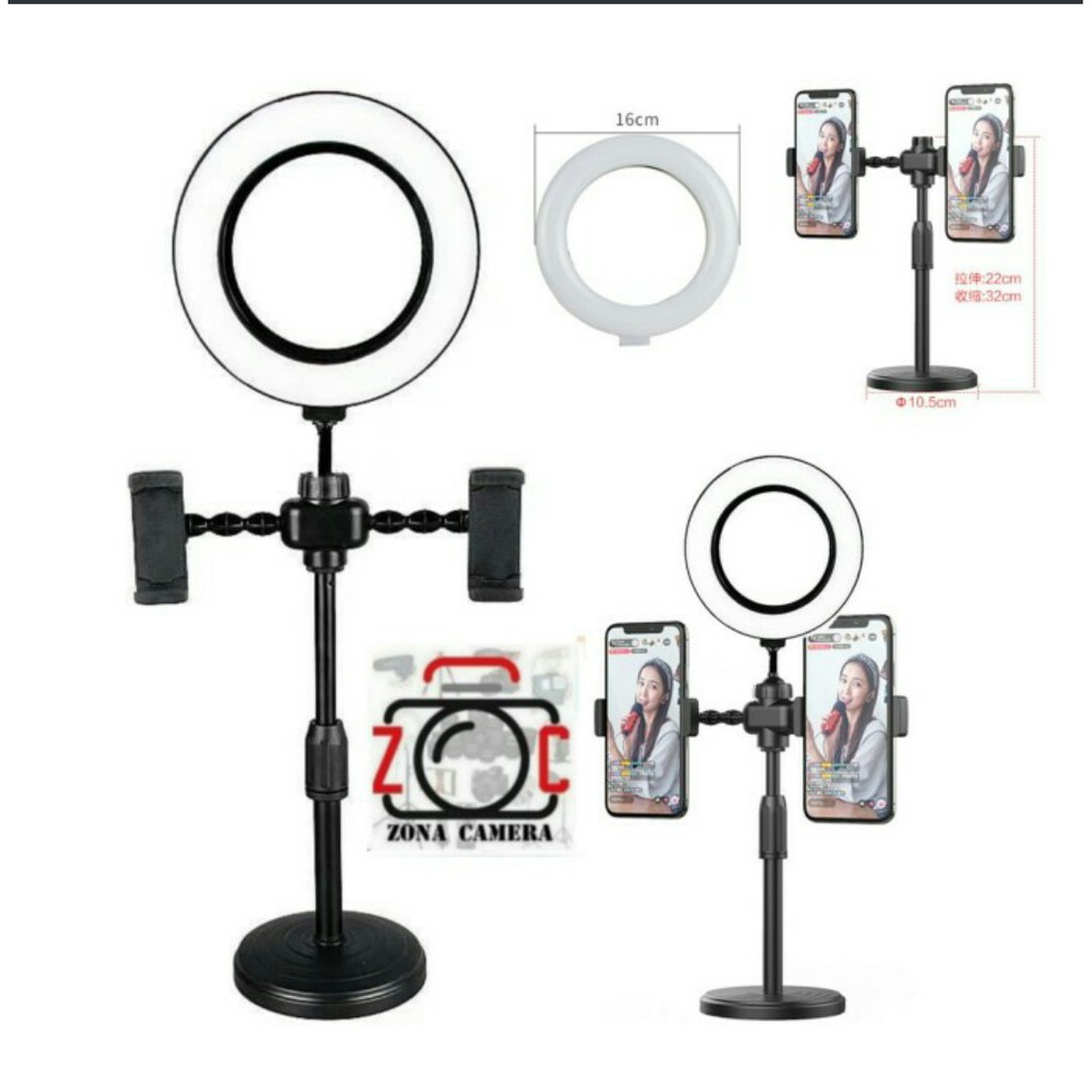 Lampu Selfie Ring Led Dimmable Dgn dua Holder hp