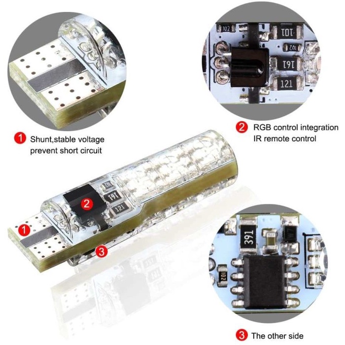 Lampu Senja Mobil Motor Dengan Remote 2Pcs Lampu LED T10 RGB