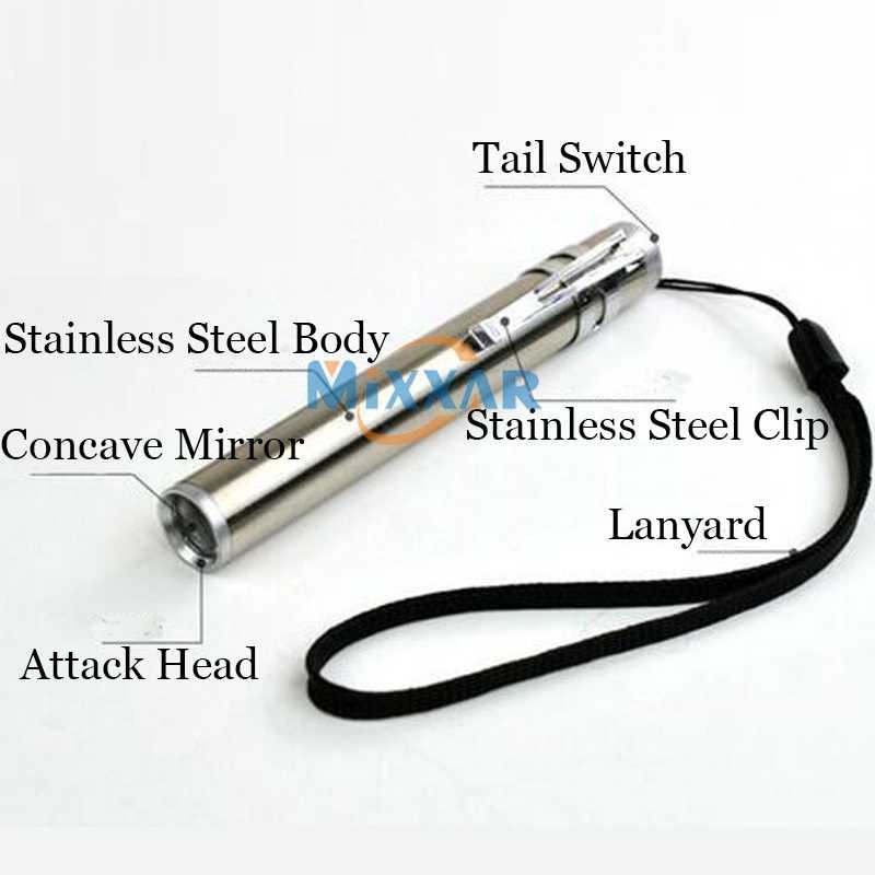 Lampu Senter LED Mini Stainless steel Baterai A3 (AAA)