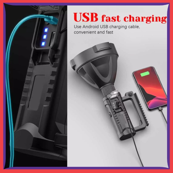 Lampu Senter LED Selam Diving Gunung Anti Air Super Terang Jarak Jauh Bisa di Cas Rechargeable Senter SWAT