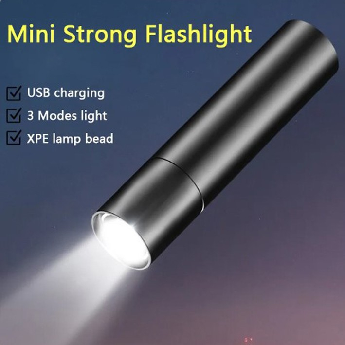 Lampu Senter LED USB Charger Aluminum Rechargeable Mini Flashlight