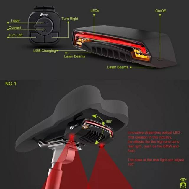 Lampu Sepeda Lampu Sign Wireless Remote Meilan X2 / Lampu Sein Sepeda