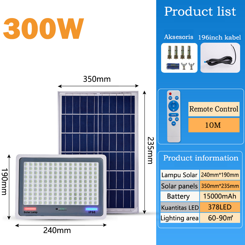 Lampu Solar Lampu 24 Jam Otomatis Outdoor Solar Cell Lampu Lampu Sorot Solar Cell Led Tenaga Surya With Remote Control For Garden, Courtyard, Indoor