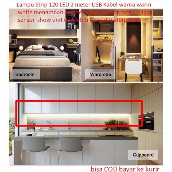 Lampu Strip 120 LED 2 meter USB Kabel warna warm white menambah aesthetic light sensor motion light sensor show unit dan lebih hangat waterproof