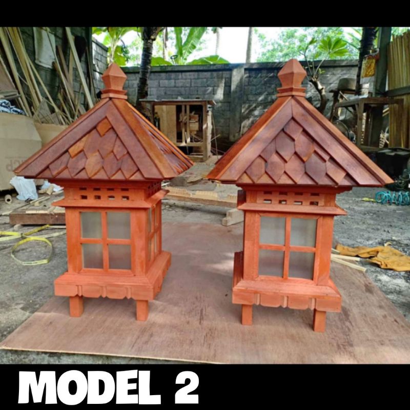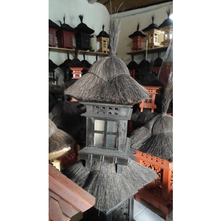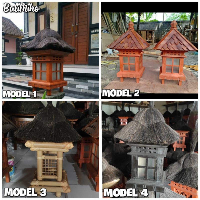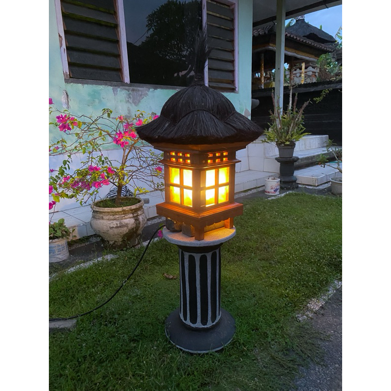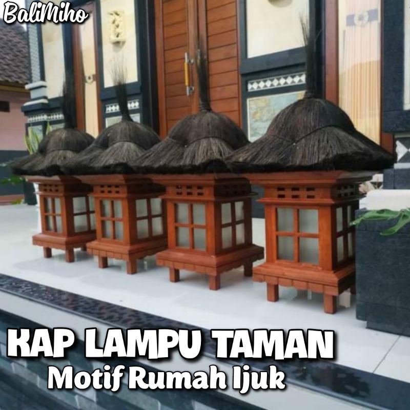 Lampu Taman Bali - Garden Lamp Bali - Lampu Motif Rumah Ijuk - Lampu Gubuk - Kap Lampu Motif Rumah Kayu