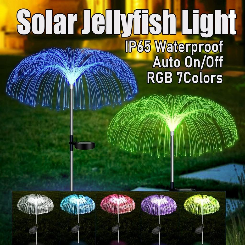 Lampu Taman Tenaga Surya Ubur-Ubur Dekorasi Taman Hias 7 Warna Multicolor Anti Air / Lampu Kembang Api Fiber Optik Outdoor Dekorasi