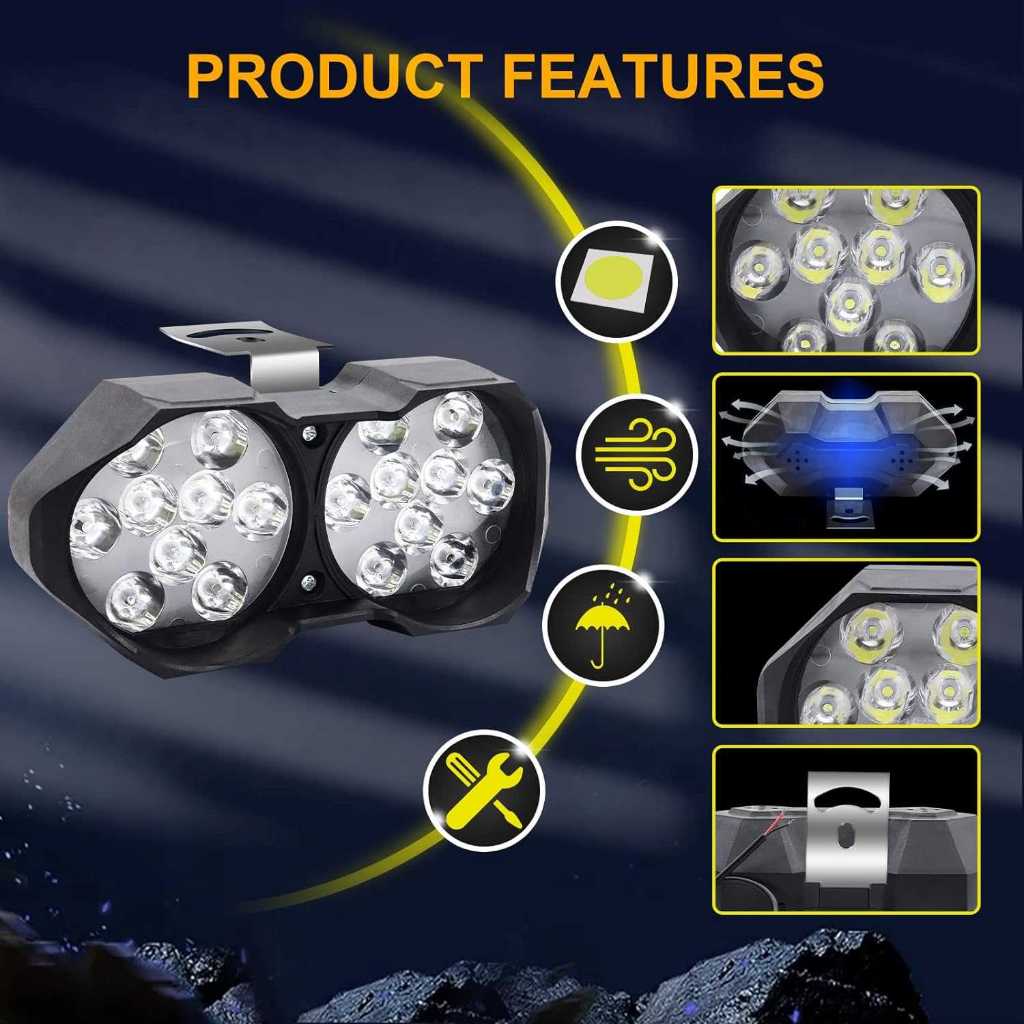 Lampu Tembak Motor LED 18 Mata 9W – Spotlight Foglamp Putih Terang IP65 untuk ATV & Touring – L5