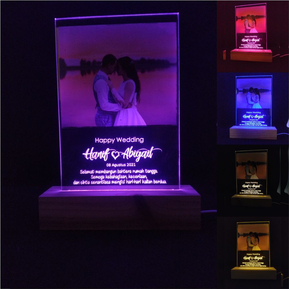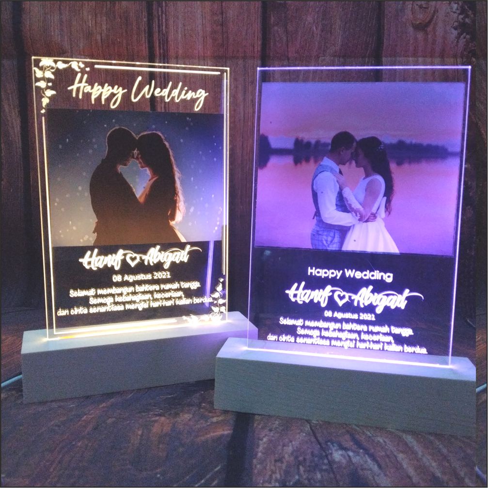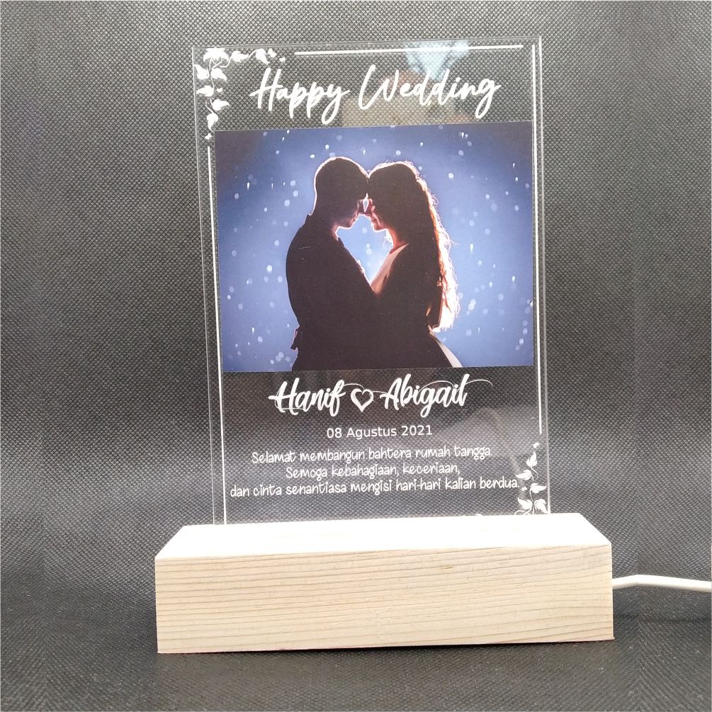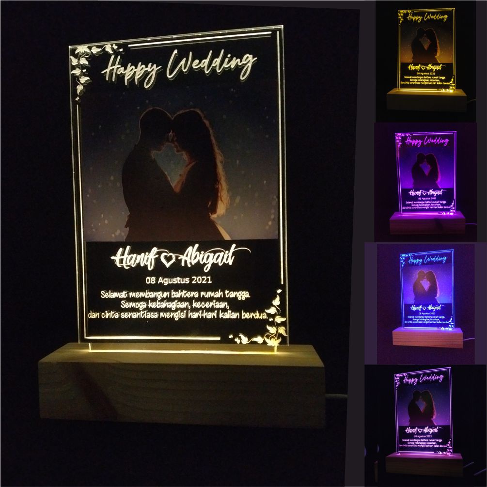 Lampu Tidur Foto Kado Pernikahan Hadiah Wedding 3D LED Akrilik CUSTOM FOTO & DETAIL