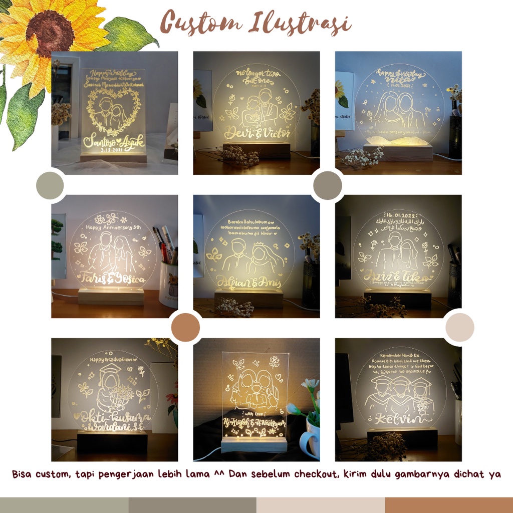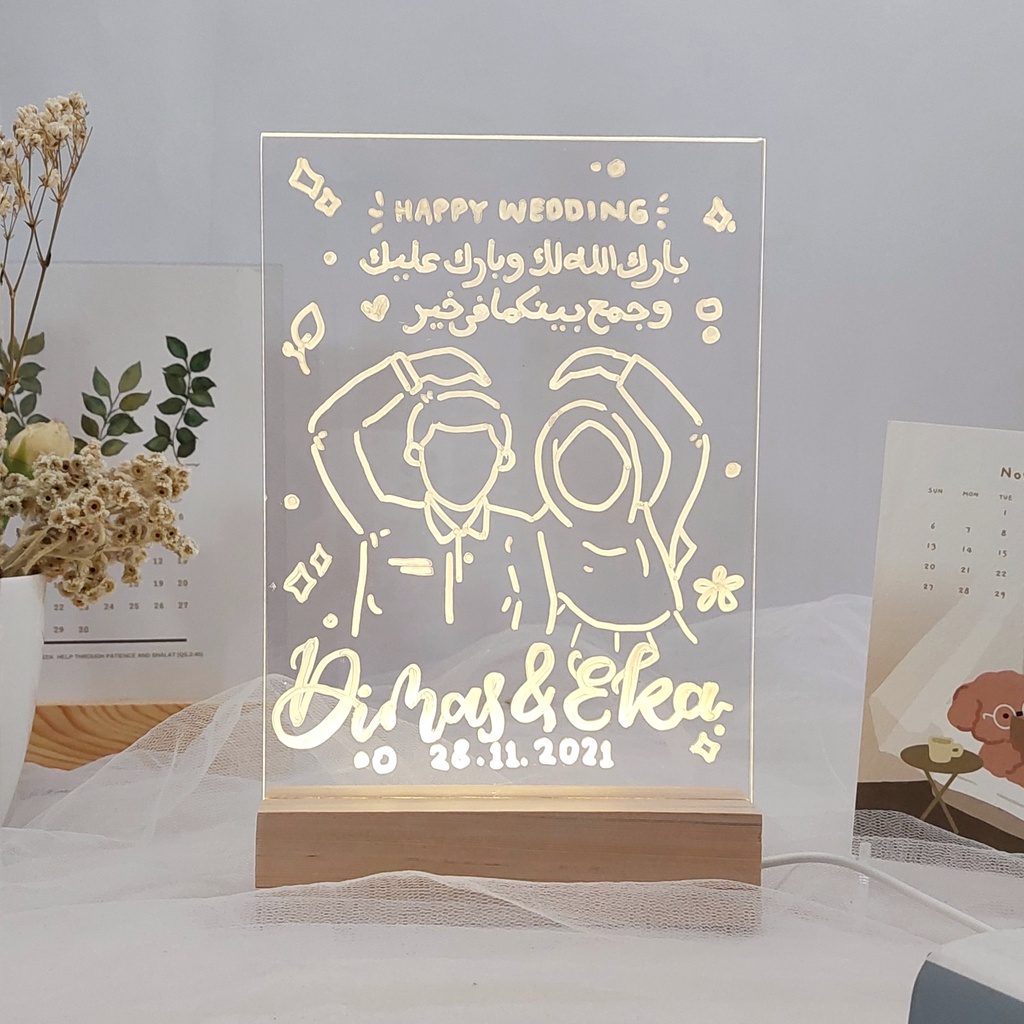Lampu Tidur Hias Akrilik Special Gift Hadiah Kado Pernikahan Kado Wisuda Kado Anniversary Kado Ulang Tahun Kenang Kenangan | Acrylic Lettering LED