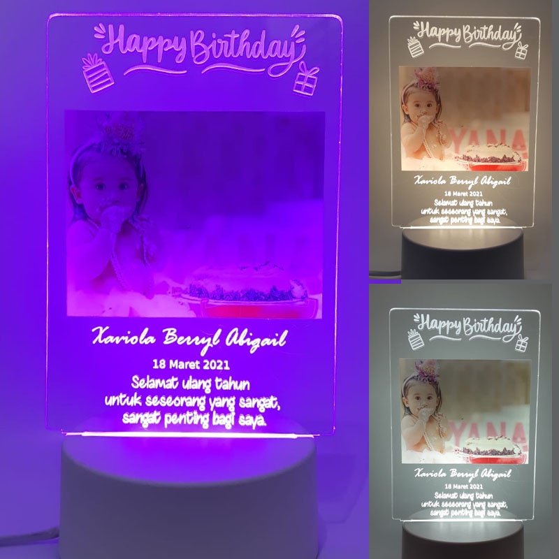 Kado Lampu Tidur Led 3 Warna akrilik custom foto hampers box hadiah murah unik untuk wedding wissuda graduation ulang tahun
