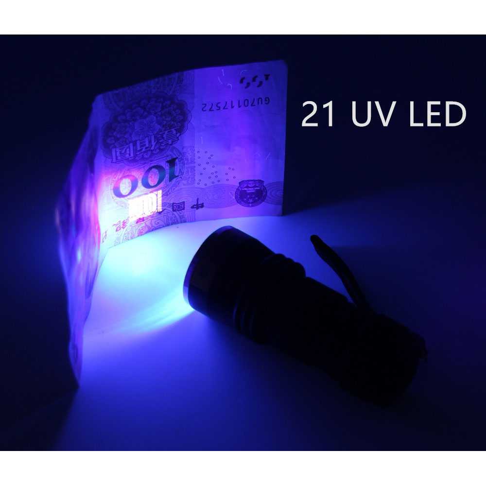 Lampu UV Senter UV LED Super Terang Ultraviolet UV 400nm 21 LED Deteksi Uang Palsu
