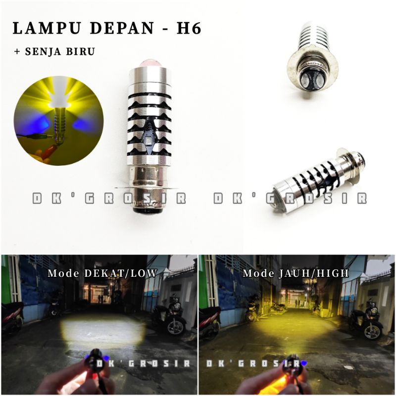 Lampu Utama LED H6 laser + senja biru - Lampu depan tipe Laser dekat Putih jauh Kuning- Lampu utama Motor Jauh dekat - HIGH LOW