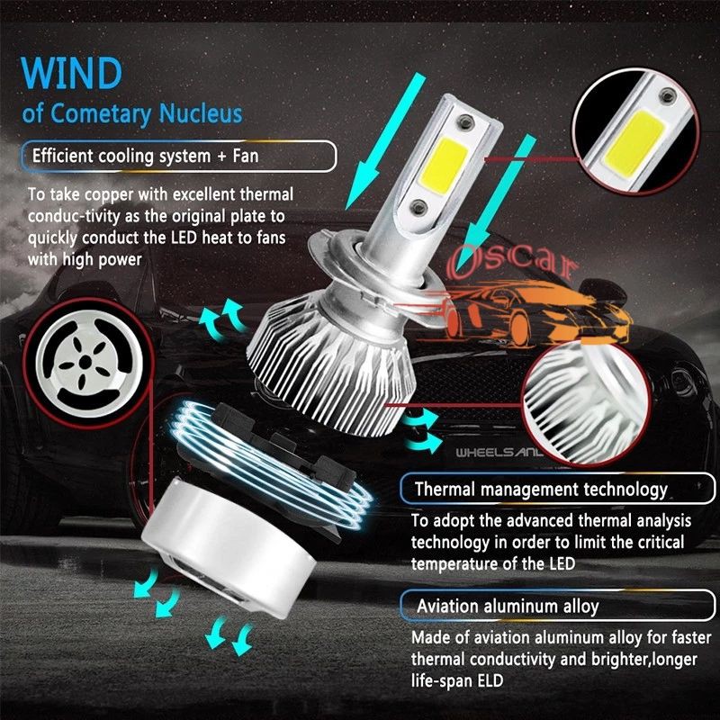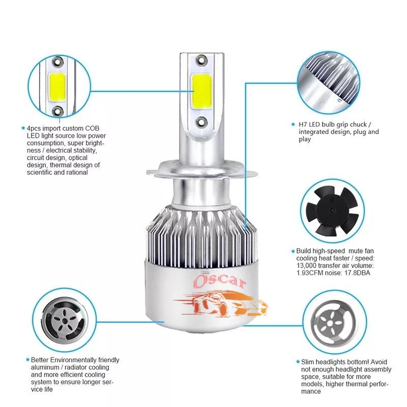 Lampu Utama Mobil LED Headlight C6 SILVER H1 H3 H4 H7 H11 HB3 HB4 9005 9006 H8 36Watt 36 Watt 36W