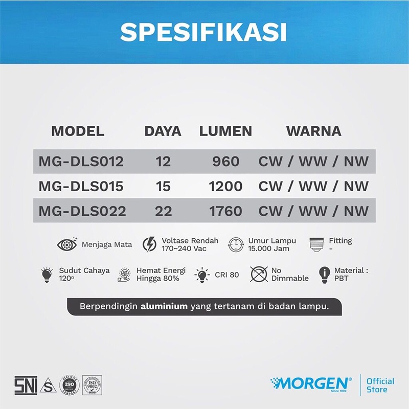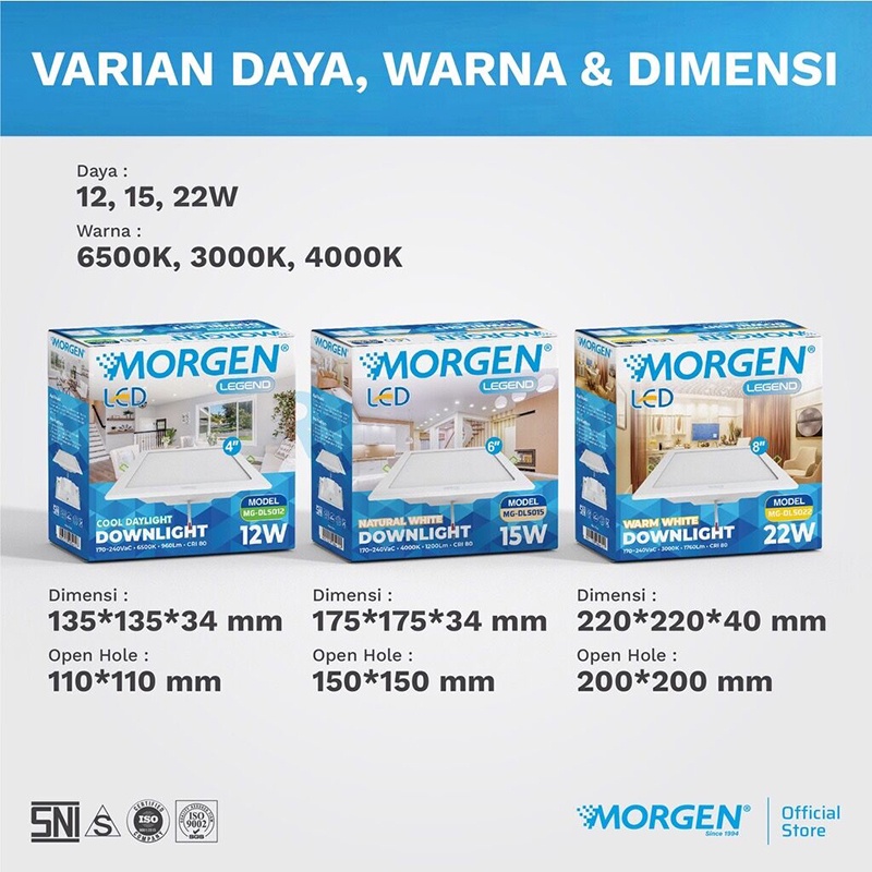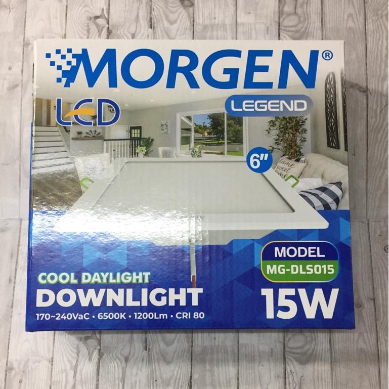 Lampu downlight LED 15 watt persegi LAMPU MORGEN LED Panel Downlight Square 15W 6"6500K/3000K/4000K