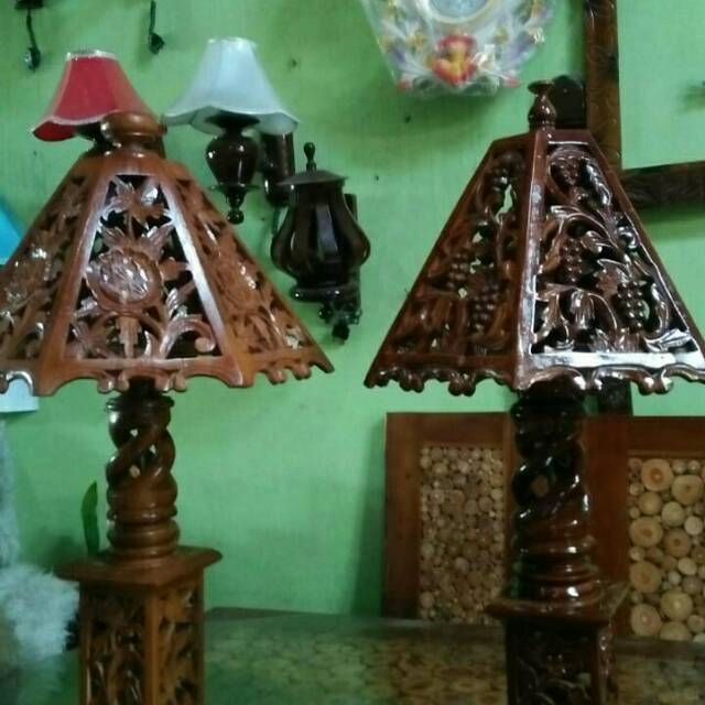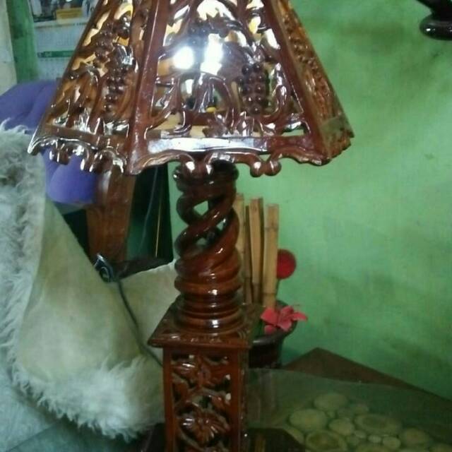 Lampu hias lampu kamar lampu sudut ruangan ukir darI kayu jati