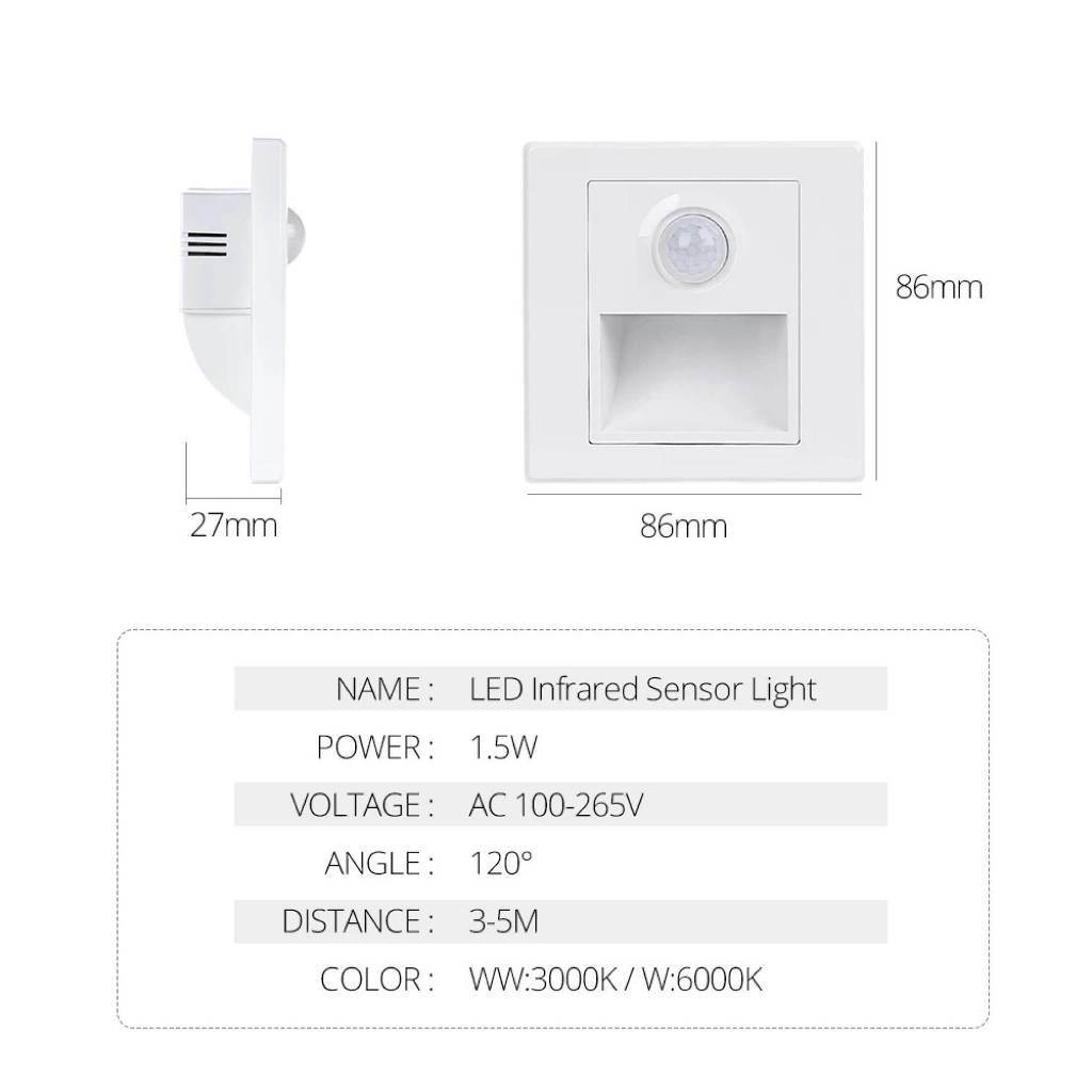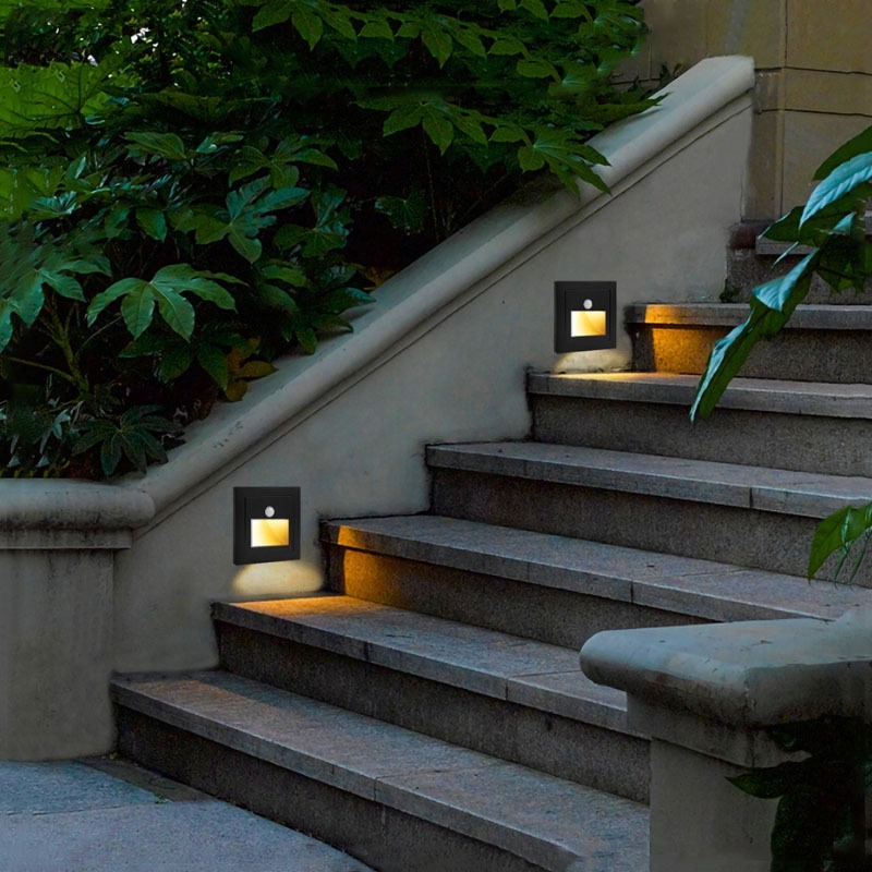 Lampu kaki LED Lampu tangga lorong dinding tersembunyi Sensor lampu tangga Lampu tangga sudut luar ruangan