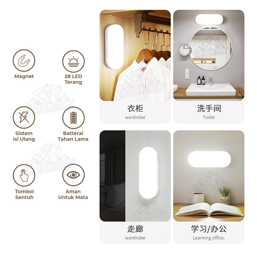 Lampu led magnet model tempel led portable cas terang 28 lid tombol sentuh lampu tidur baca belajar lampu darurat saat listrik padam lamp emergency NBHT3
