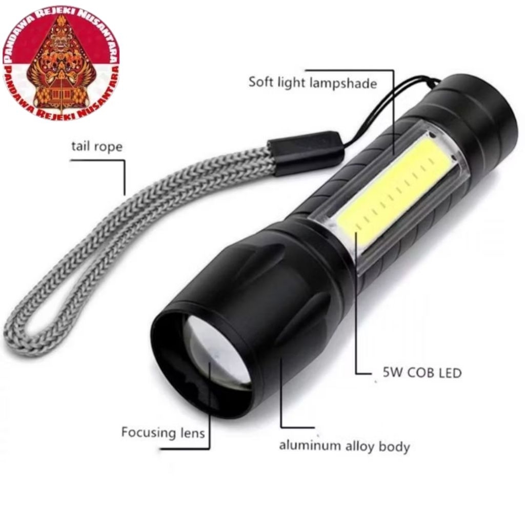 Lampu Senter Mini LED Zoom & COB Soft Light USB Charger