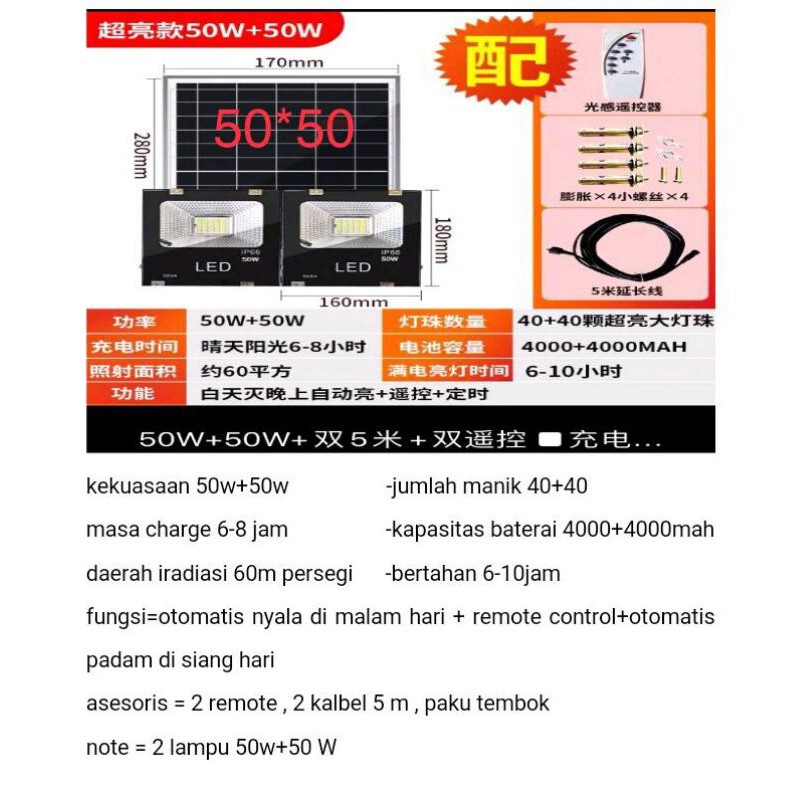 Lampu solar cell 50x50watt dua lampu