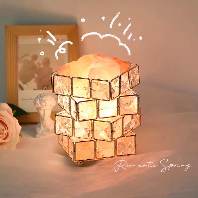 Lampu tidur kristal aromaterapi garam himalaya FREE essential oil diffuser disfuser ruang tamu dan toilet dengan lampu meja