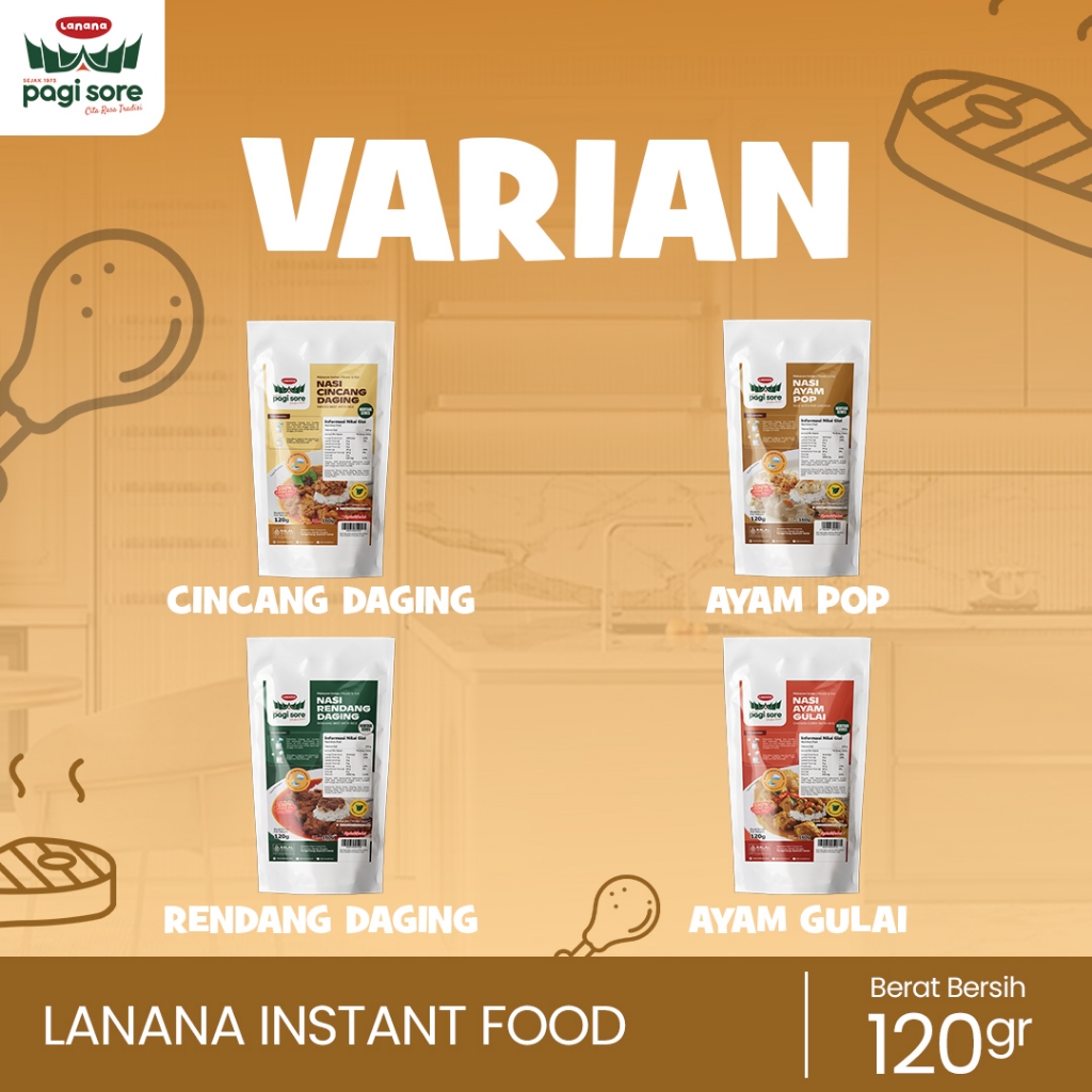 Lanana - Nasi Putih Instant : Daging Rendang, Cakalang Woku, Ayam Teriyaki & Ayam Pedas Kemangi Travel Pack