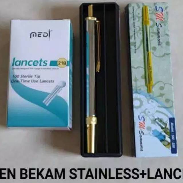 Lancing device sammora pen stainless plus jarum lancet 21G..pen bekam sammora