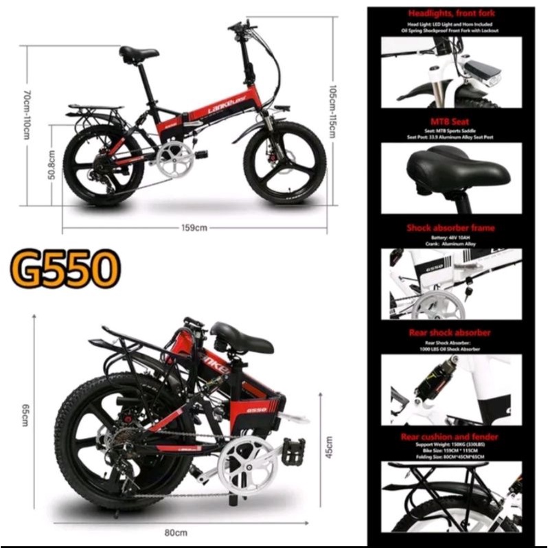 Lankeleisi Sepeda Elektrik Listrik Lipat G660 / G650 / G550 / G300 / G100 Smart Moped 48V10.4Ah NEW