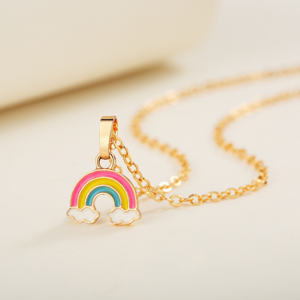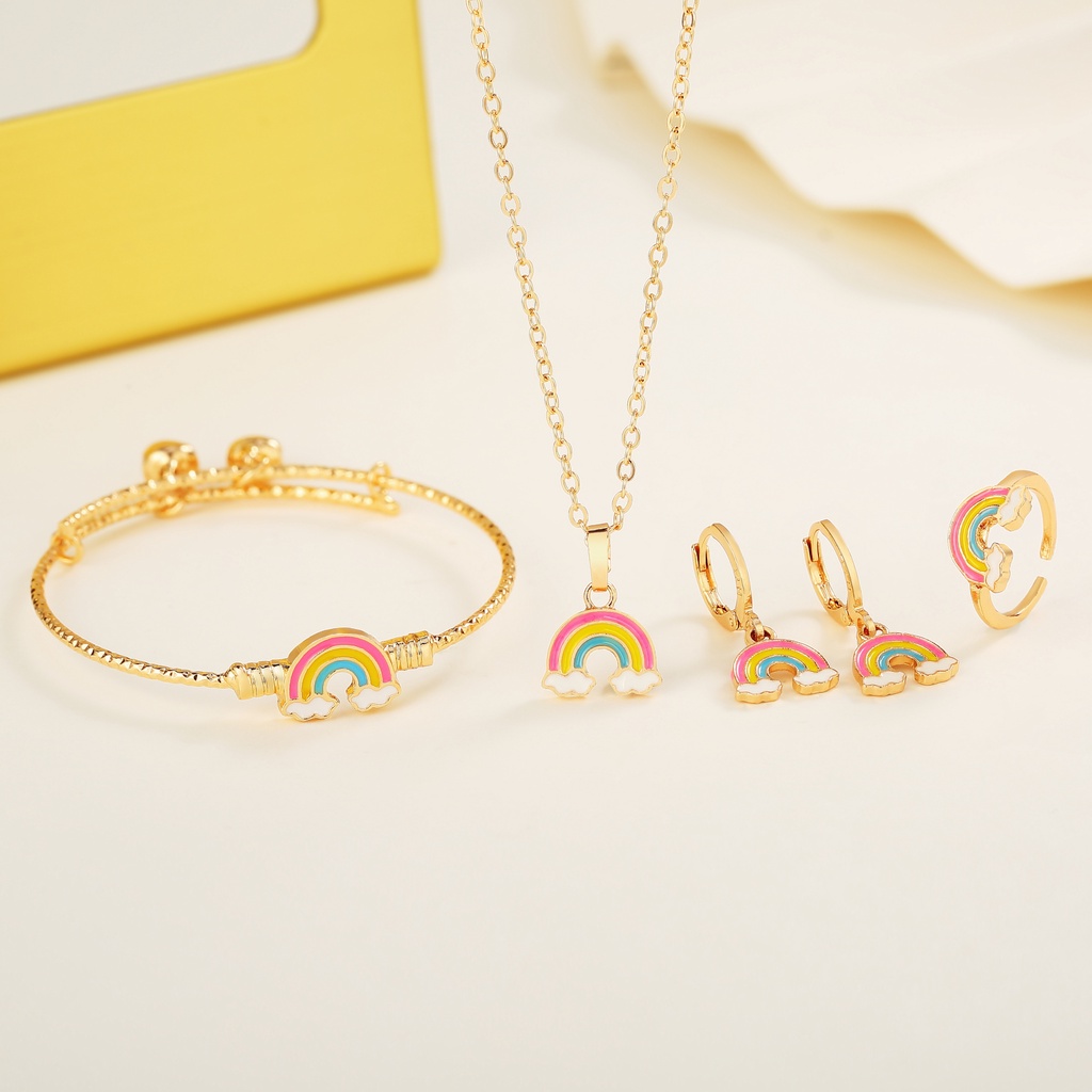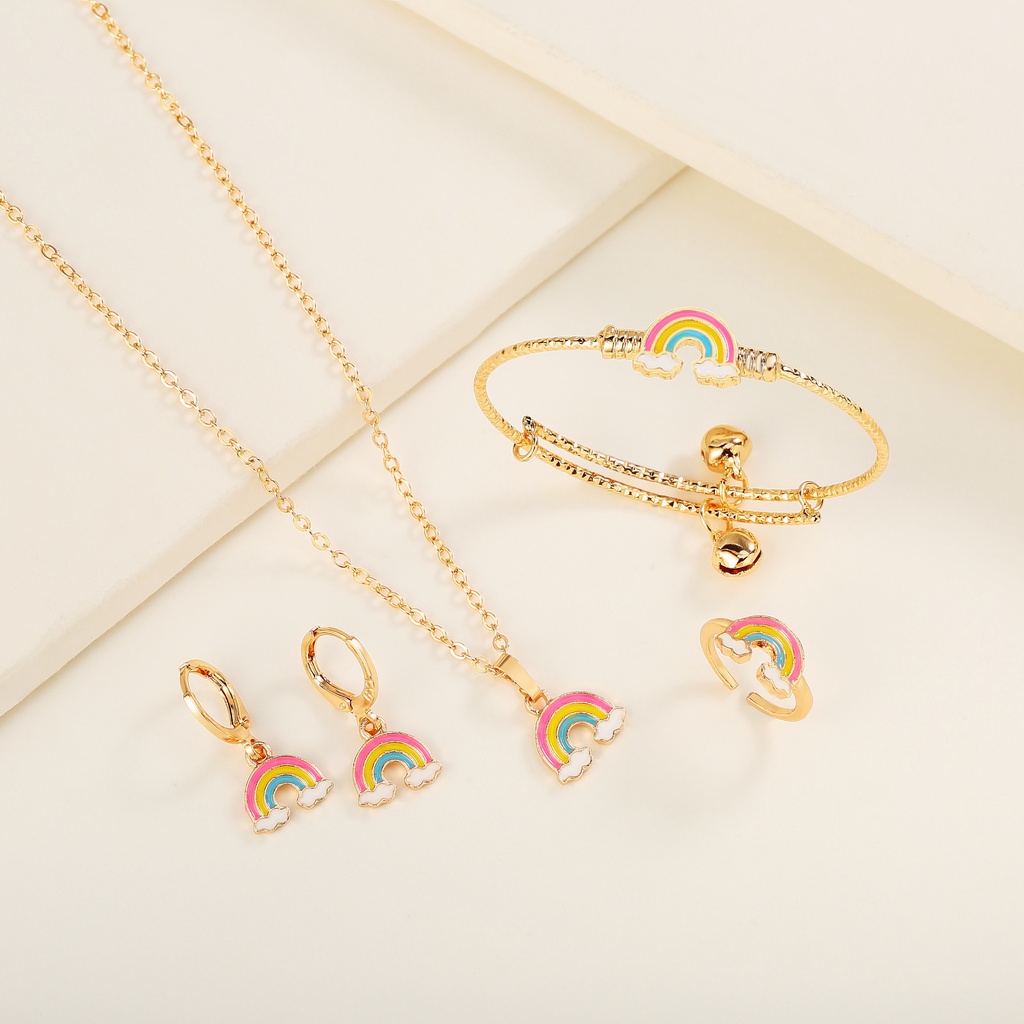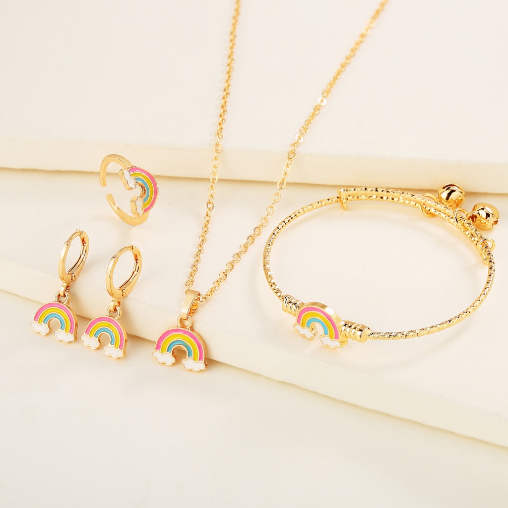 Lanme Jewelry Set Perhiasan Anak Perempuan Titanium Anti Karat Pelangi Aksesoris Anak Perempuan Awan Kalung Anting Gelang Set Y477