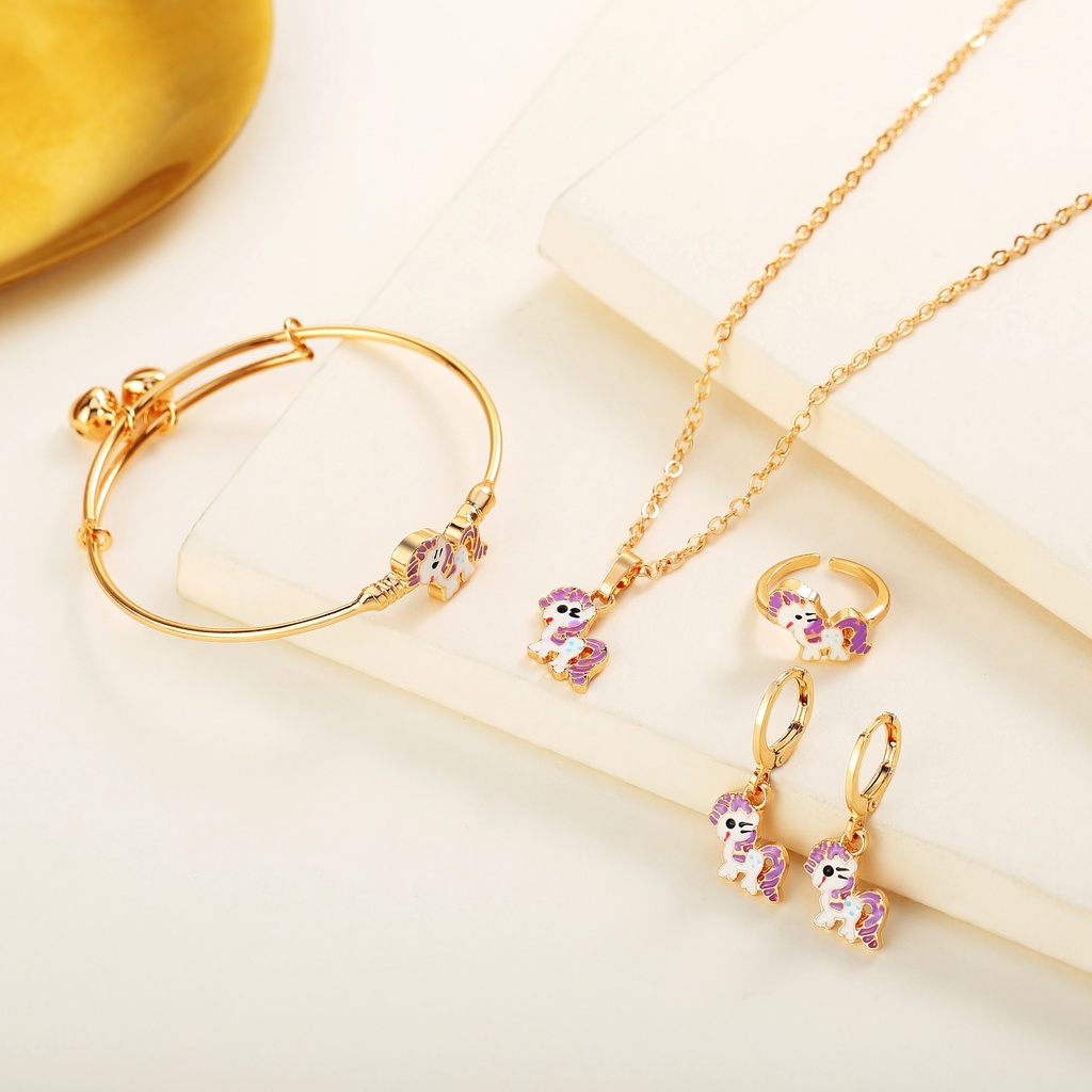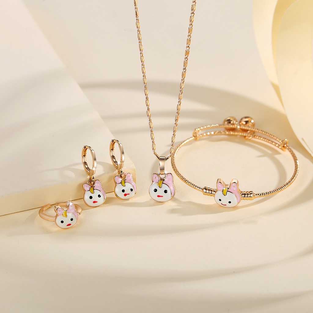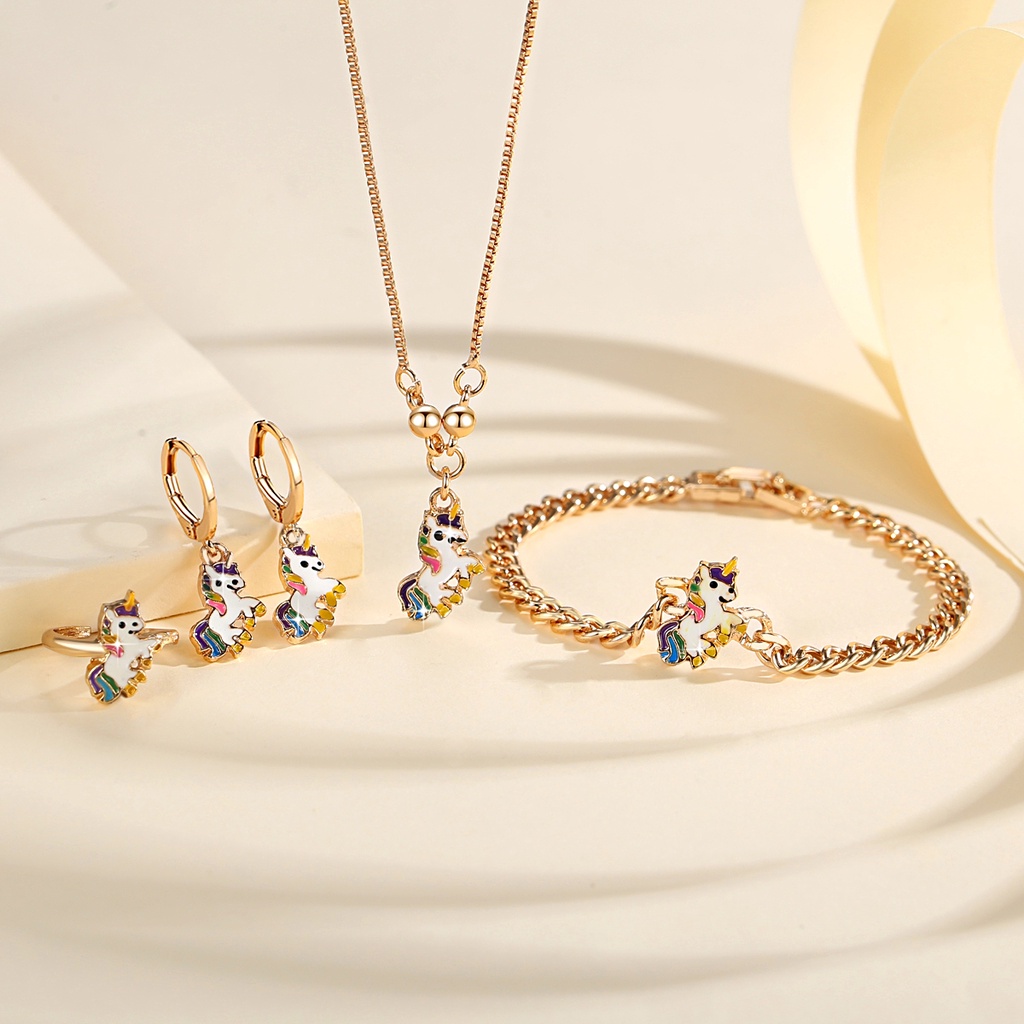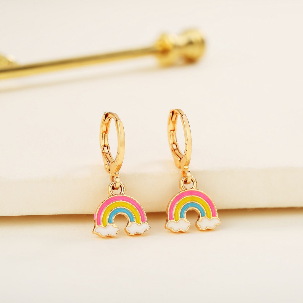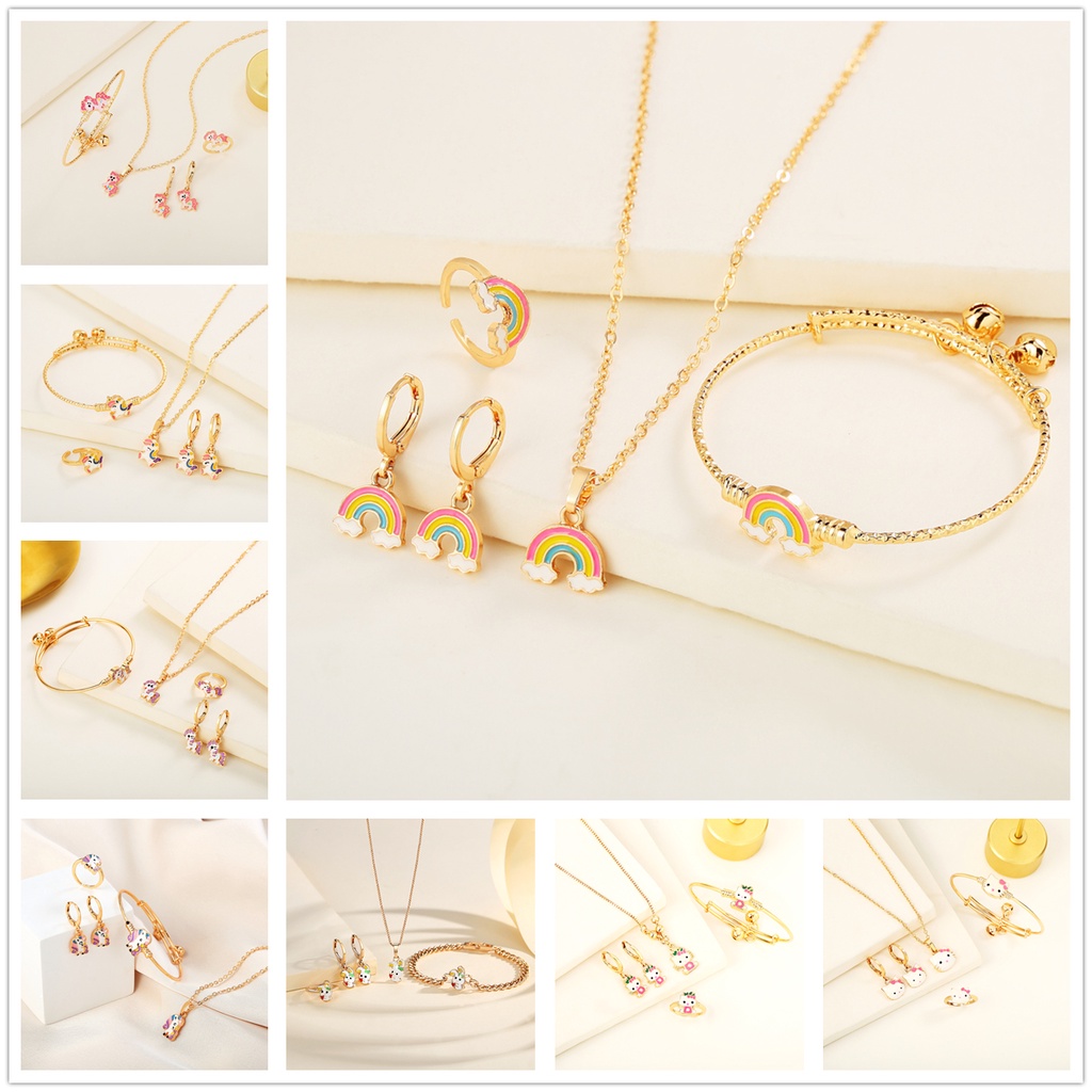 Lanme Jewelry Set Perhiasan Anak Perempuan Titanium Anti Karat Pelangi Aksesoris Anak Perempuan Awan Kalung Anting Gelang Set Y477