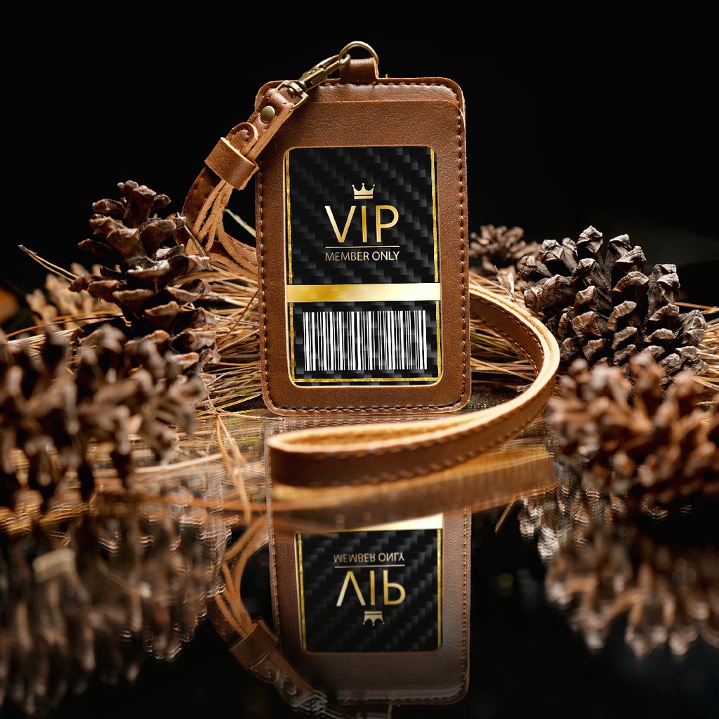 Klover Dipung ID Card Holder Lanyard Kulit Sintetis Coklat Tua - Desain Elegan, Praktis, dan Tahan Lama
