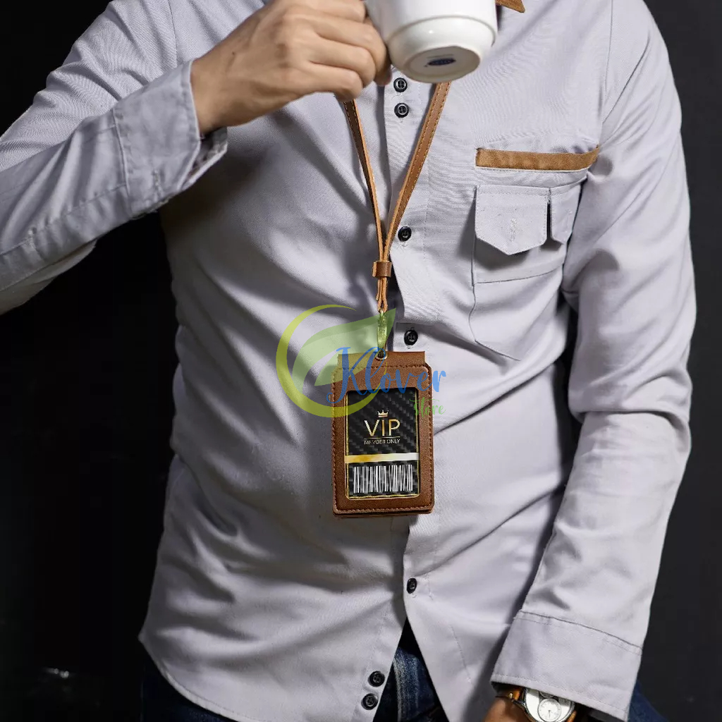 Klover Front ID Card Holder Kerja Bahan Kulit Card Holder Name Tag Kantor