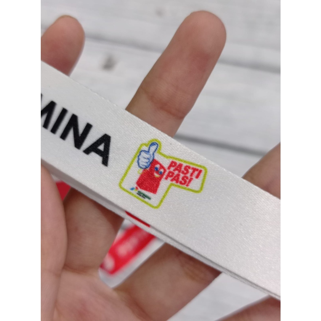 Lanyard Pertamina Logo "PASTI PAS" Merah Putih / Lanyard Pertamina Desain Baru / Lanyard Pertamina SPBU / Lanyard Full Desain Printing Surabaya