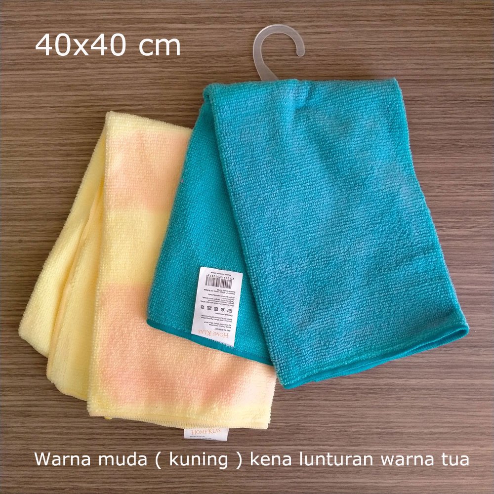 Lap Microfiber 40x40 cm Warna Kuning Ada Noda Luntur dari Warna Tua